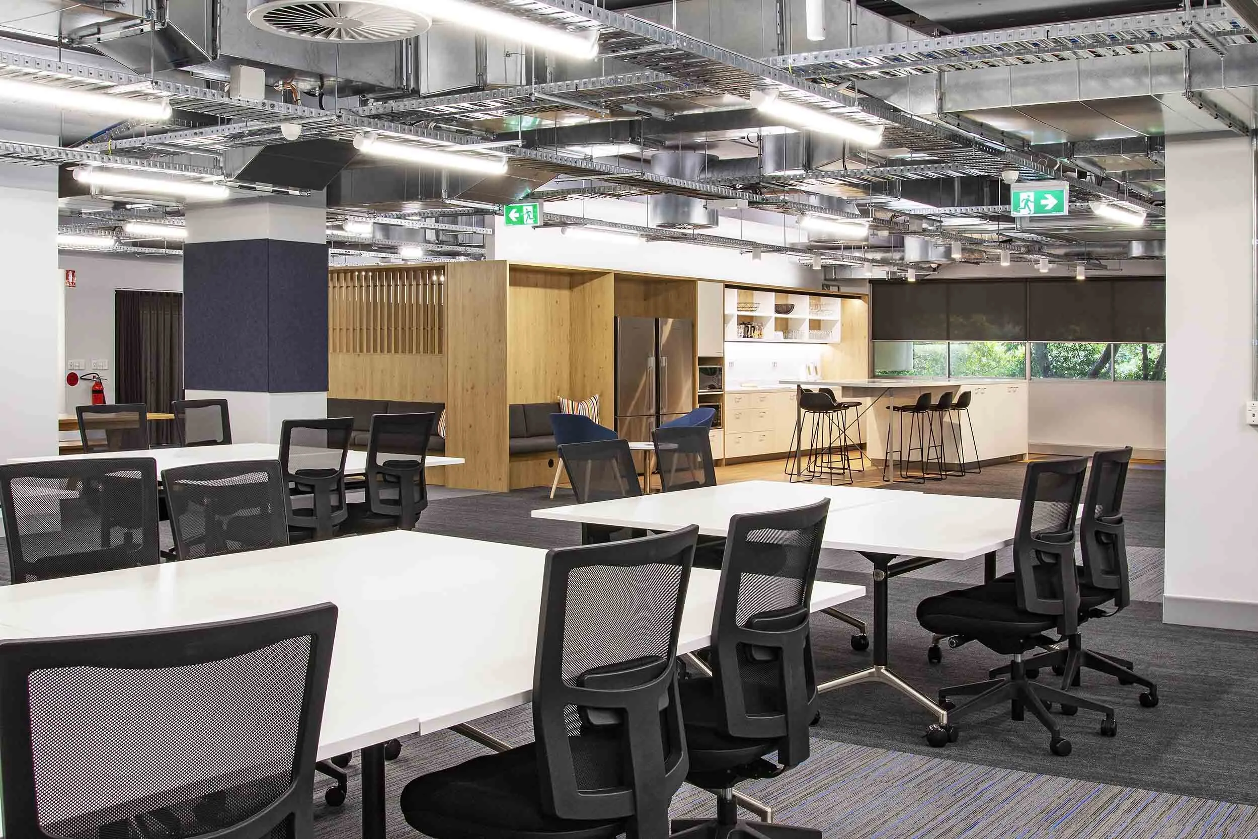 Resilient materials, from walls and floor to kitchen surfaces mean high traffic areas are easy to maintain and present well at all times. Timber textures bring the variety of spaces together and add warmth to an otherwise very practical space.